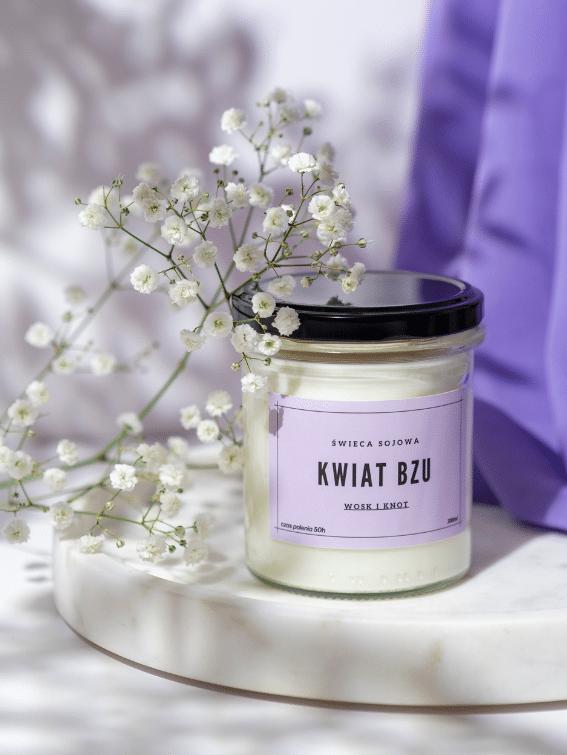 Świeca Sojowa Kwiat Bzu – przenosi w świat delikatnej, wiosennej świeżości, otulając przestrzeń subtelnie słodkim aromatem białego bzu. Jej główna nuta, kwiat bzu, jest niczym delikatny powiew wiosennego poranka, przynoszący ze sobą obietnicę nowych początków i delikatnego odrodzenia. Płatki róży delikatnie uzupełniają ten bukiet, dodając lekkości i romantycznego uroku. Liście goździków wnoszą odrobinę pikantności i głębi, równoważąc słodycz kwiatu bzu i płatków róży, co nadaje świecy wyjątkowego charakteru. Białe piżmo dopełnia całość, tworząc elegancką, lekko pudrową bazę, która nadaje temu zapachowi trwałości i subtelnej wyrafinowania. 'Kwiat Bzu’ to idealny wybór dla tych, którzy pragną w swoim domu atmosfery spokoju, harmonii i delikatnej elegancji. Ten zapach jest jak ucieczka do kwitnącego ogrodu, gdzie czas zwalnia, a zmysły są delikatnie rozpieszczane.
