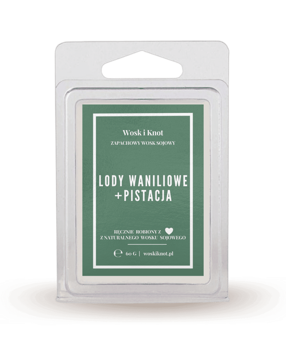 Wosk Zapachowy Lody Waniliowe Pistacja – tą świecę chciałoby się zjeść! Słodkie i prawdziwie mocno waniliowe lody oprószone kawałkami pistacji. Kompozycja z pewnością przypomni Tobie o letnich przyjemnościach i długich wieczorach!