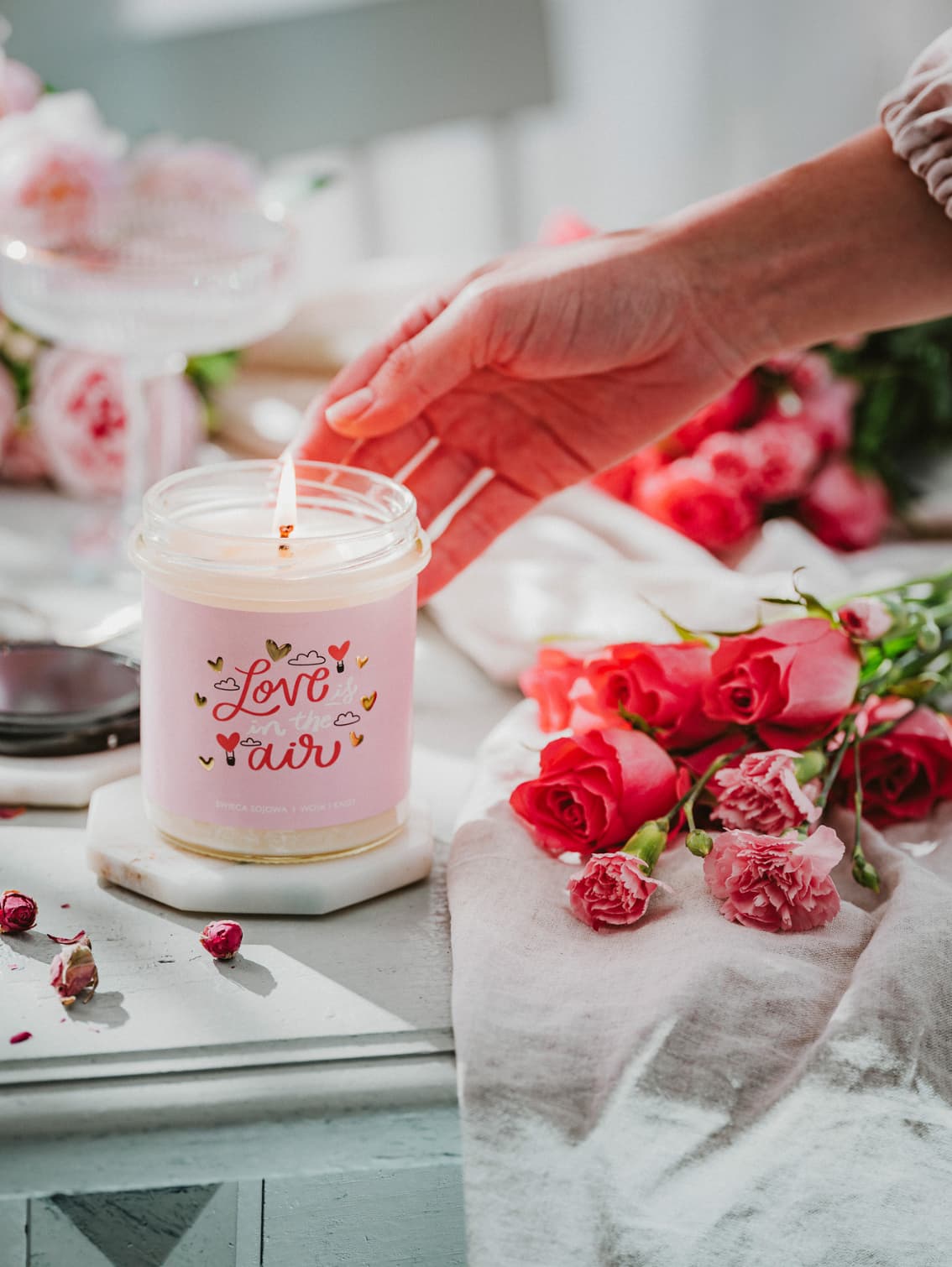 Love is in the Air to świeca dla tych, którzy szukają zapachu codziennego komfortu. Naturalnego, kobiecego i niewymuszonego. Idealna do przestrzeni, w których chcesz zwolnić, odetchnąć i poczuć się dobrze.