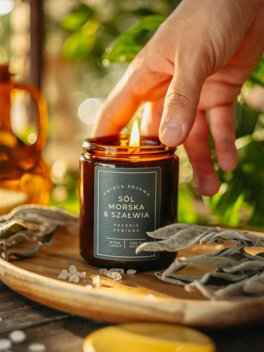 Sól Morska & Szałwia Świeca sojowa to zapach, który przenosi nad wybrzeże skąpane w porannej bryzie. Świeże, mineralne akordy soli i ozonu spotykają się tu z ziołową głębią, tworząc kompozycję czystą, rześką i jednocześnie wyrafinowaną. To aromat, który koi zmysły i wprowadza atmosferę spokoju inspirowanego naturą.