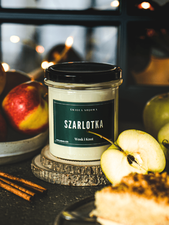 Szarlotka to świeca sojowa idealna na jesienne i zimowe wieczory, do kuchni, jadalni lub wszędzie tam, gdzie chcesz stworzyć atmosferę radości, spokoju i kulinarnej przyjemności – bez pieczenia.