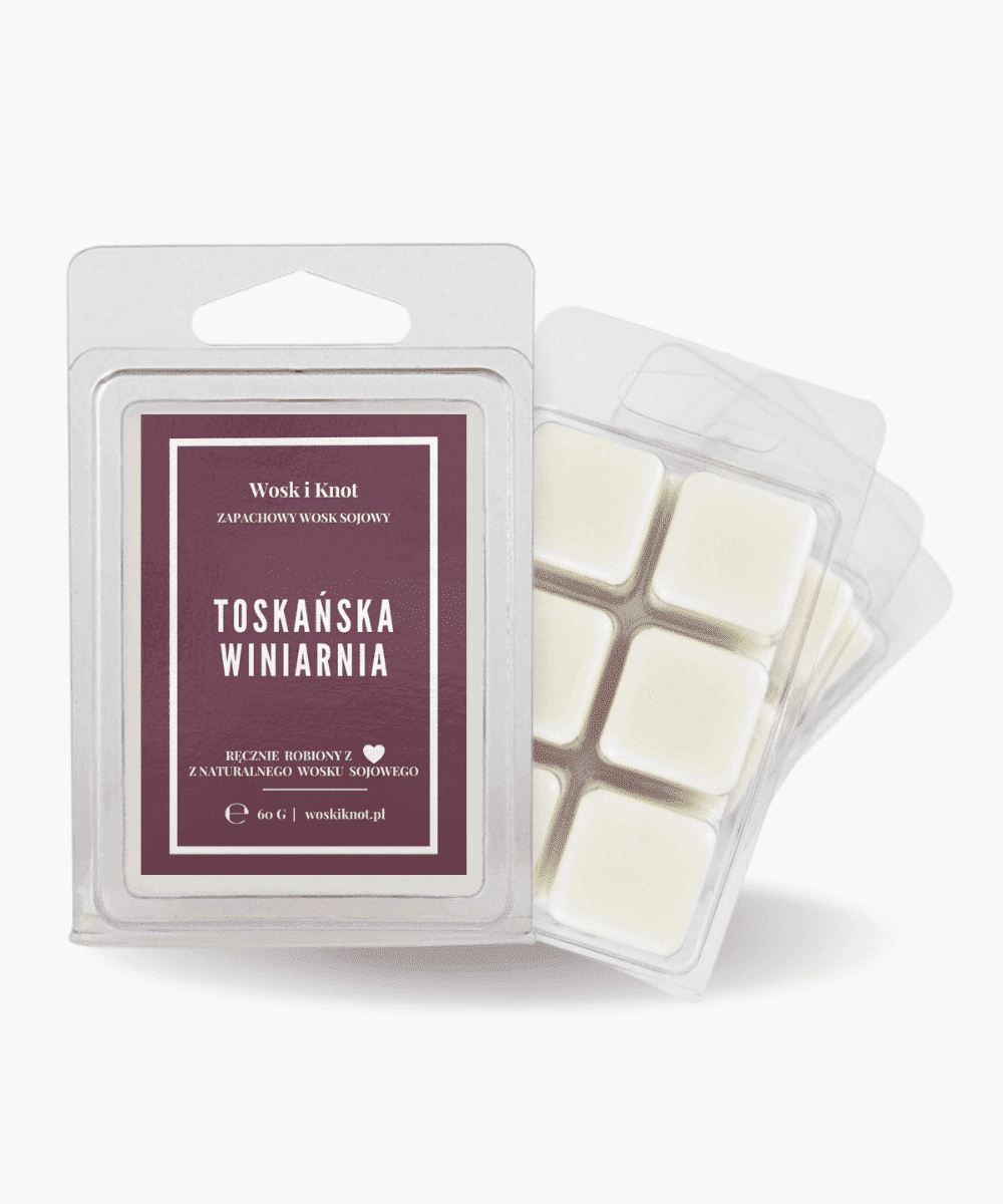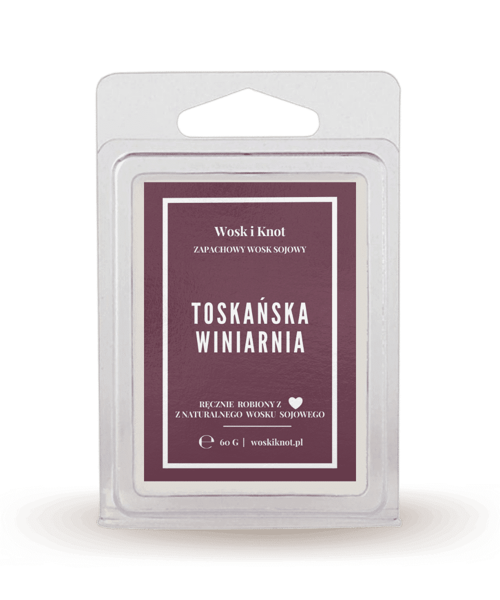 Wosk Zapachowy Toskańska Winiarnia – zapach ten to podróż do słonecznej Italii, pełnej drewnianych pali po której pną się mocno dojrzałe, owoce winogron. Jest to bardzo soczysty, słodki i intensywny zapach. Całość dopełnia delikatna, drzewna nuta cedru, a także słodycz wanilii.